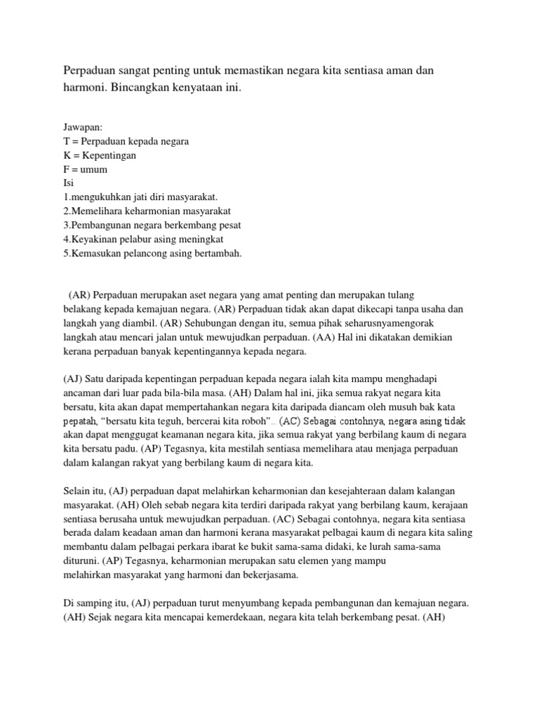 Kepentingan Perpaduan Dalam Kalangan Masyarakat Pdf